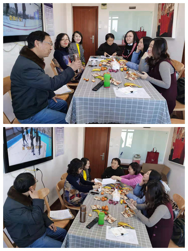 同一天的下午一点,英语文学学系也在诚信楼1402教工之家举办“辞旧岁迎新年”联欢会活动。全体教师均准时到场,他们的趣味活动是“猜字谜”的游戏,学系老师分成两组。首先出场的胡振明老师,他的动作和表情将“东张西望”“回眸一笑”等演绎得惟妙惟肖,其他老师很快猜出。但在“饺子”这道看似平常的题目上,胡老师却遇到了麻烦,直到演示出“擀皮”的动作,才有老师猜出。第二组出场的李铭老师表现力超群,无论是“茶叶蛋”、“煎饼果子”等食品还是“画饼充饥”“掩耳盗铃”等抽象的成语,李老师表演得十分贴切。赢得了阵阵掌声。持续近两小时的联欢会在愉悦融洽的氛围中圆满结束。