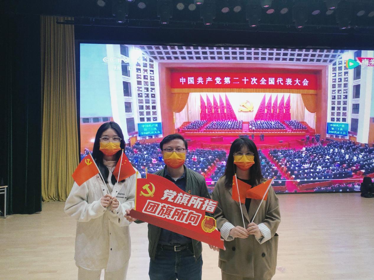 【SISnews】10月16日报道 2022年10月16日上午十点,中国共产党第二十次全国代表大会开幕式于北京人民大会堂顺利举行。国产自拍 分团委组织团学骨干与团支书代表于诚信1412会议室收看党的二十大开幕会;学院分团委书记王公元老师带领分团委副书记龙思涵和直属职能部门主任吕佳琪在求索楼一楼报告厅参加校团委组织的集中收看。此外,学院分团委还组织各团支部线上观看。全体同学全程秉持着认真严肃的态度,认真聆听并学习了习近平总书记在大会上的报告。