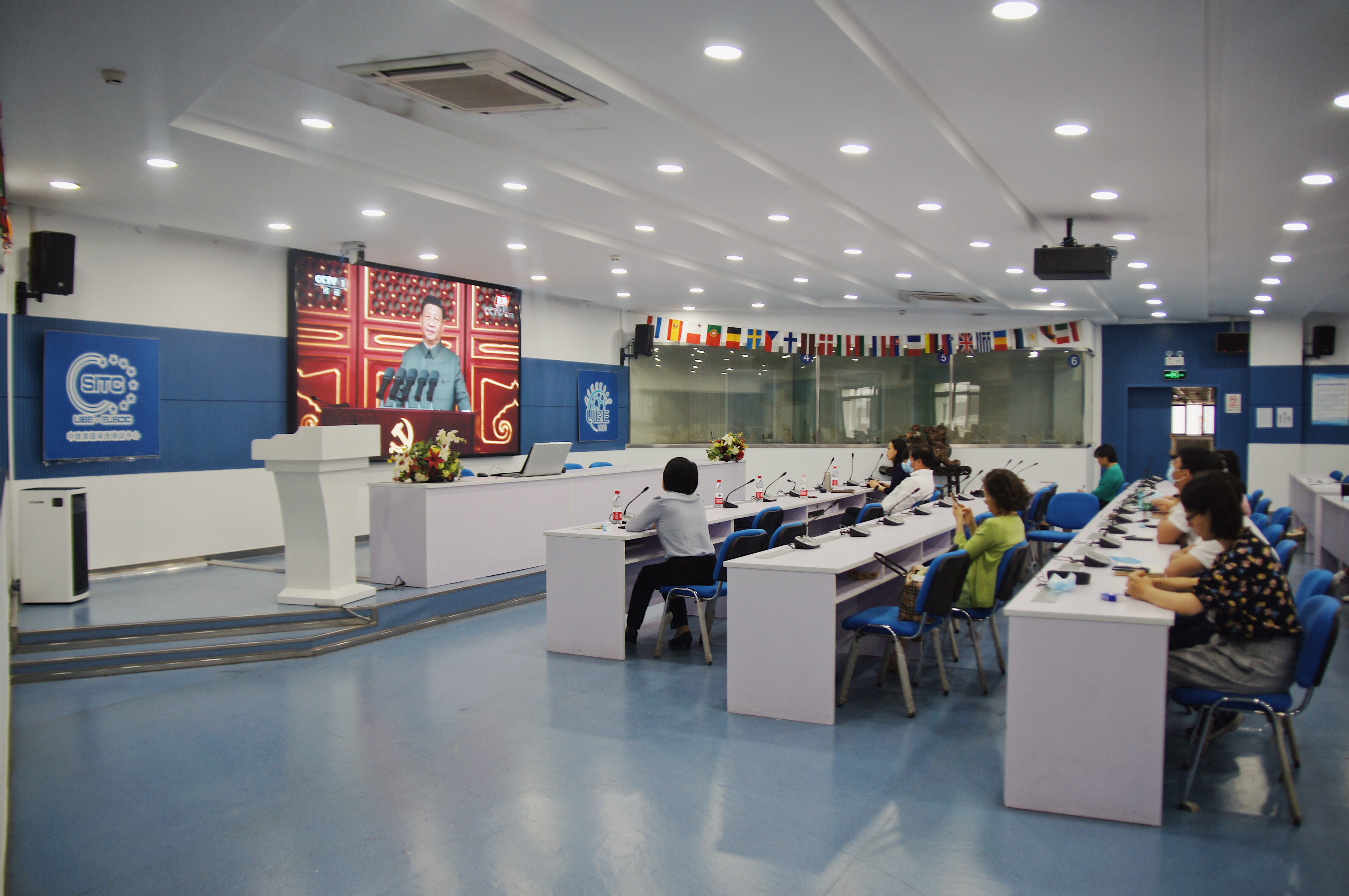 2021年7月1日上午8时,庆祝中国共产党成立100周年大会在天安门广场隆重举行,国产自拍 全体教职工党员齐聚诚信楼1412会议室,全程认真收看大会实况直播,学习领会习近平总书记重要讲话精神。
