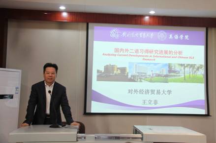 院长、博士生导师、王立非教授利用参加全国商务英语专业院系负责人联系会议的间隙,为山东财经大学外国语学院的师生作了题为“国内外二语习得研究的进展”的学术报告。学院教师、全体研究生、高年级本科生参加了学术报告会。
