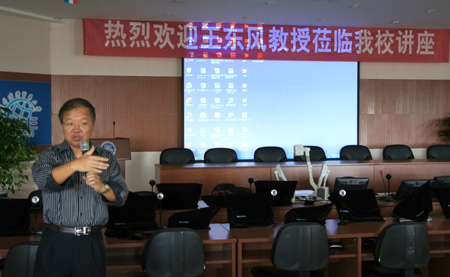 2012年9月12日上午,中山大学外语教学中心主任、翻译研究中心主任、新华学院首席教授、博士生导师王东风教授应邀在诚信楼1412会议室为我院师生做了题为“翻译中的文化困惑与网络对策”的学术讲座。我院翻译方向部分教师和研究生共一百二十多人参加了此次讲座。讲座由国产自拍