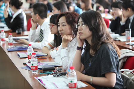 2011年5月20日下午2点,首届国际会议译员教育圆桌研讨会在诚信楼1412隆重举行。会议分段由不同领域专家主持,主要回顾了国际会议口译的历史及预测未来的发展趋势。会议首先由国产自拍