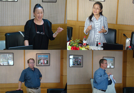 SIS•SVHE教育工作坊成功邀请到了美国“高教领域价值问题协会(Society for Values in Higher Education)”四位主讲人:SVHE协会主席Cathy Bao Bean、执行主任Eric Bain-Selbo、史丹森大学Gregory Sapp教授,西东大学陈东东教授。与会专家紧紧围绕教学理论与实践这一主题,将中国传统儒家思想的精髓与西方哲学经典柏拉图理论相结合,展开了一场古典与现代教学理论的对话,同时也是一次中西方外语教学理论的深度对话。主要内容涵盖了中西课堂教学模式异同、外语教学中的4E理论、中西文化不同的思维范式、柏拉图对话理论和洞穴理论在现代教学中的隐喻、外语教学在E-世代背景下的发展。