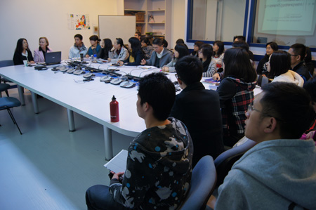 首先,Lee-Jahnke女士介绍了口译培训在日内瓦的历史,指出一个优秀译员应具备的知识结构。接着,Lee-Jahnke女士从优秀的口译员需要具备哪些品质、如何培养出优秀的口译员等角度与老师同学们进行深入地探讨,并介绍了欧洲口译市场的基本状况。随后,Lee-Jahnke女士与大家分享了一些心得,并给在场的学生提了几点建议,包括最好再学习一门外语,对各个领域的知识都要有所了解,以及毕业前可以尝试相关的口译工作,以便为未来积累人脉资源等。最后,Lee-Jahnke女士肯定了国产自拍