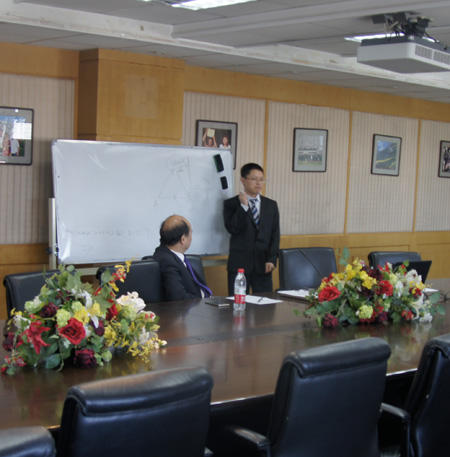 王斌华教授为政府、企业以及多个知名论坛(“国际社会发展联合会”国际研讨会、博鳌亚洲论坛、国际证券投资论坛等)做过口译,有着极为丰富的经验。讲座中,他谈到了自己同传中的经历,由此深入浅出地说明口译工作者需要的多任务处理能力,可能面对的突发情况,以及灵活应对的策略。比如,充分利用语境,重要的是传递信息,而不是逐字逐句一一对应翻译出来。他强调了交替传译中发挥短期记忆的重要性,积极听并辅以必要的笔记,不能因为忙于记笔记而忽略了专注地听。讲到交替传译中的信息处理过程时,王教授画了一个信息处理的“三角”,形象地解释从语言A到语言B不是简单的直线式对应,而是需要以意义为核心,进行脱离语言外壳的转码,这样的处理必然是以有效沟通为前提。 围绕此次讲座的主题,王教授系统地讲了专业口译工作者需要的认知能力(扎实的双语功底、宽广的知识面、口译技巧)和非认知能力(交际能力、适应能力、专注力、镇静力等),并就此和在座老师和同学进行了交流。他引用了学生实践中接待外宾的一个例子,说明了好的口译,不仅是语言本身没问题,而且要得体,符合语用的礼貌性原则,并能促成高效沟通。王教授指出了口译员专业培训需要培养听一遍即能听懂的能力、听词取意的思维方式、信息和话语分析、整合的技巧、高效的记忆和笔记技巧、能有效分配精力,做到一心多用、双语快速转换能力、说一遍就能表达好的能力。