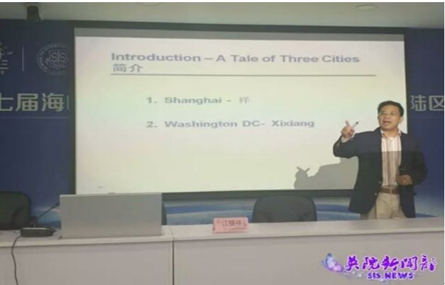 随后,江锡祥博士为大家带来了精彩讲座。他认为:当今社会,优秀的人才应该对家庭、对社会有强烈的责任感,他讲述了儿提时代“家人分咸鸭蛋”的感人故事,小小的故事蕴含着对肩负家庭责任感的强烈认知。江博士还强调:优秀的人才应具备适应社会的能力,不断学习新的事物并保持初心。关于人生的转折点,他分享了“留在上海还是安徽凤阳下乡?”、“毕业后是留在上外教书还是出国深造?”、“华盛顿学习”、“ABD or MBA?”、“锤炼底特律”、“抗压北京”、“改革上海”等多个小故事。同学们纷纷表示,从中受益良多。讲座临近结束时,大家与江锡祥博士积极互动,现场提问,气氛十分热烈。