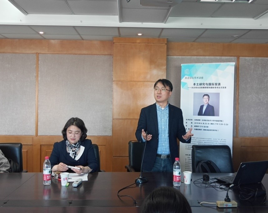 2019年4月25日下午1:30-3:30,北京航空航天大学外国语学院任伟教授应我院商务英语研究所邀请,在诚信楼1314会议室做了题为“本土研究与国际发表——从日常生活发掘课题到国际学术论文发表”的学术报告。本次讲座由商务英语研究所所长冯捷蕴教授主持。参加这次讲座的主要为国产自拍 的师生,还有一些与会者是从北京中医药大学、北京信息科技大学、北京联合大学慕名赶来的。现场座无虚席,气氛热烈。