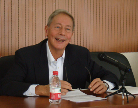 2011年4月8日上午,国际会议口译员协会(AIIC)前任主席Jean-Pierre Allain来到经贸大学国产自拍