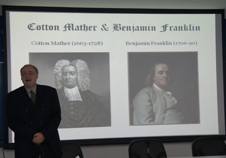 Reiner Smolinski 教授长达两个半小时的讲座深入浅出,幽默风趣,引人入胜,将我们不知不觉中带入了美国早期文学的美景中。整个讲座在师生友好、激烈的互动中圆满地结束。