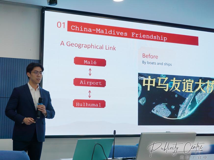 下一位上场的是刘哲含同学,她以“一带一路”中的桥梁作为演讲的开头。桥梁,不仅指的是马里通海湾那坚固的实体构造,更象征着“一带一路”所搭建起的合作与交流之桥。她还巧妙地将话题延伸到了自己的家乡天津,提到了那里的天津港与滨海新区,这些同样是连接世界、促进发展的桥梁,给人们铺就了美好生活之路。
