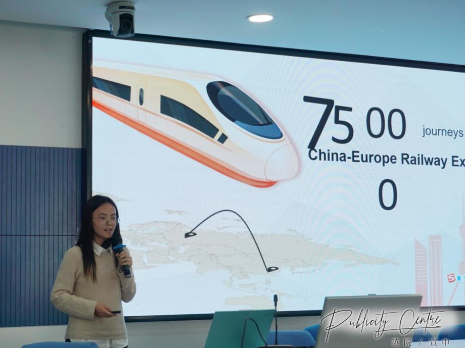 接下来上场的是秦晓露同学,她首先介绍了缅甸的建设,并提出“一带一路”在经济、社会及国际关系上发挥的重要作用。她还介绍了家乡南昌在“一带一路”政策的促进下取得的科技发展和经济发展。