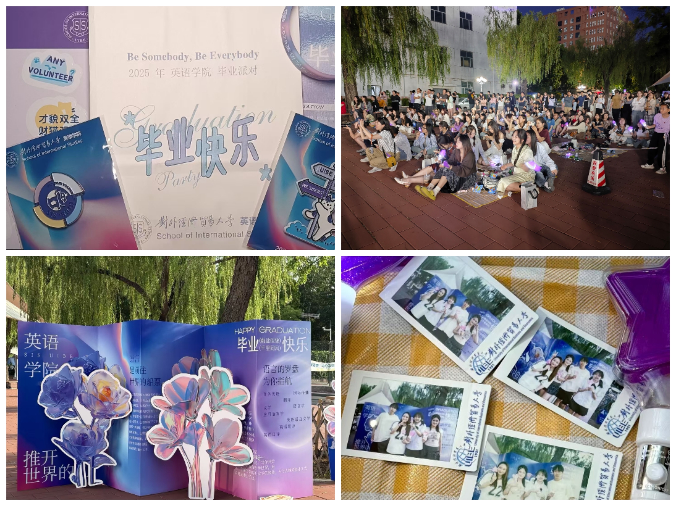 6月15日晚,英院2025届毕业派对在虹小广场温馨启幕,现场布置氛围感拉满,绚丽背景板与创意KT板打造拍照打卡专区,学院赠送的拍立得定格下毕业生们的灿烂笑容与美好瞬间;休闲区配备小食与水果、野餐垫与荧光棒,让同学们在宽松、惬意、温馨氛围中畅聊校园点滴。