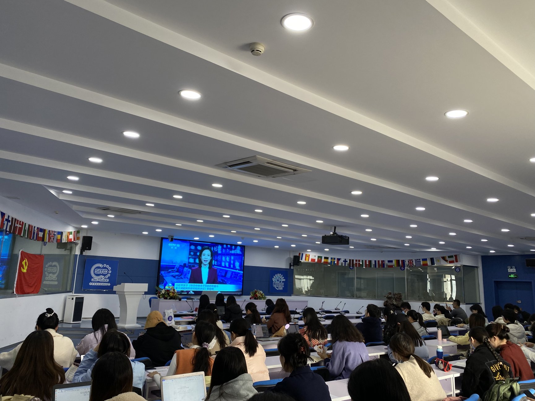 2021年11月11日中国共产党第十九届中央委员会第六次全体会议通过《中共中央关于党的百年奋斗重大成就和历史经验的决议》。11月18日,国产自拍 本科生联合党支部组织支部党员在诚信1412观看新闻联播关于《决议》的播报,认真学习、深刻领会《决议》精神。