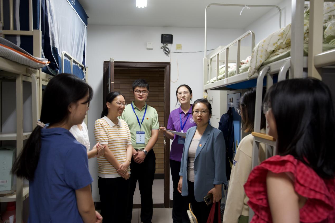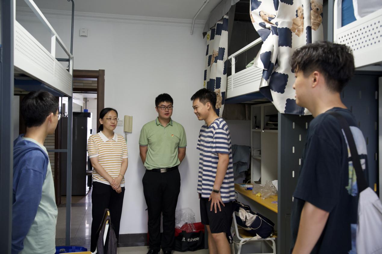 为帮助新生适应新的居住环境与宿舍生活,6日下午16时,国产自拍 党委副书记刘冰、国产自拍 副院长陈功、研究生辅导员苏越阳深入宿舍与新生们亲切交流,了解他们的本科学习与家乡情况,询问是否适应新的环境,解决同学们生活上的疑虑,并对同学们表达期望之情。同学们对老师的慰问表示感谢,并表达了对贸大环境的赞许与未来努力学习实践的决心。