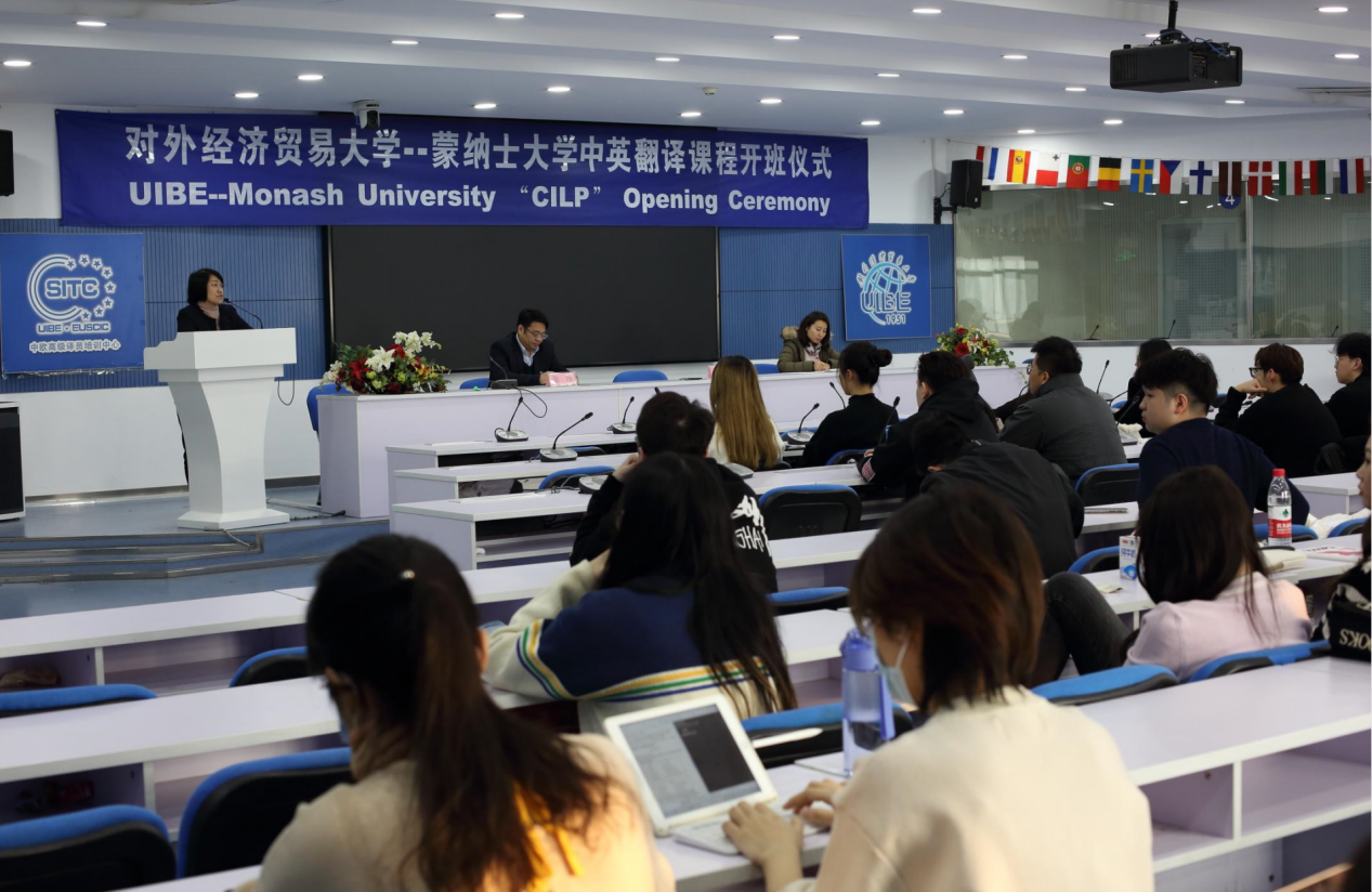 项洁书记代表国产自拍 对参加课程班的53名同学表示热烈欢迎。她说,对外经济贸易大学作为国内双一流高校,在国际化人才培养和国际交流方面有悠久的历史。建校70年来,对外经济贸易大学为国家培养了众多优秀人才,与国外多家知名高校建立了合作关系。蒙纳士大学中英翻译课程班已在国产自拍 连续举办12年,国产自拍 为翻译课程班配备了优秀的师资团队和管理团队,希望每位同学在贸大惠园学有所得,学有所成。