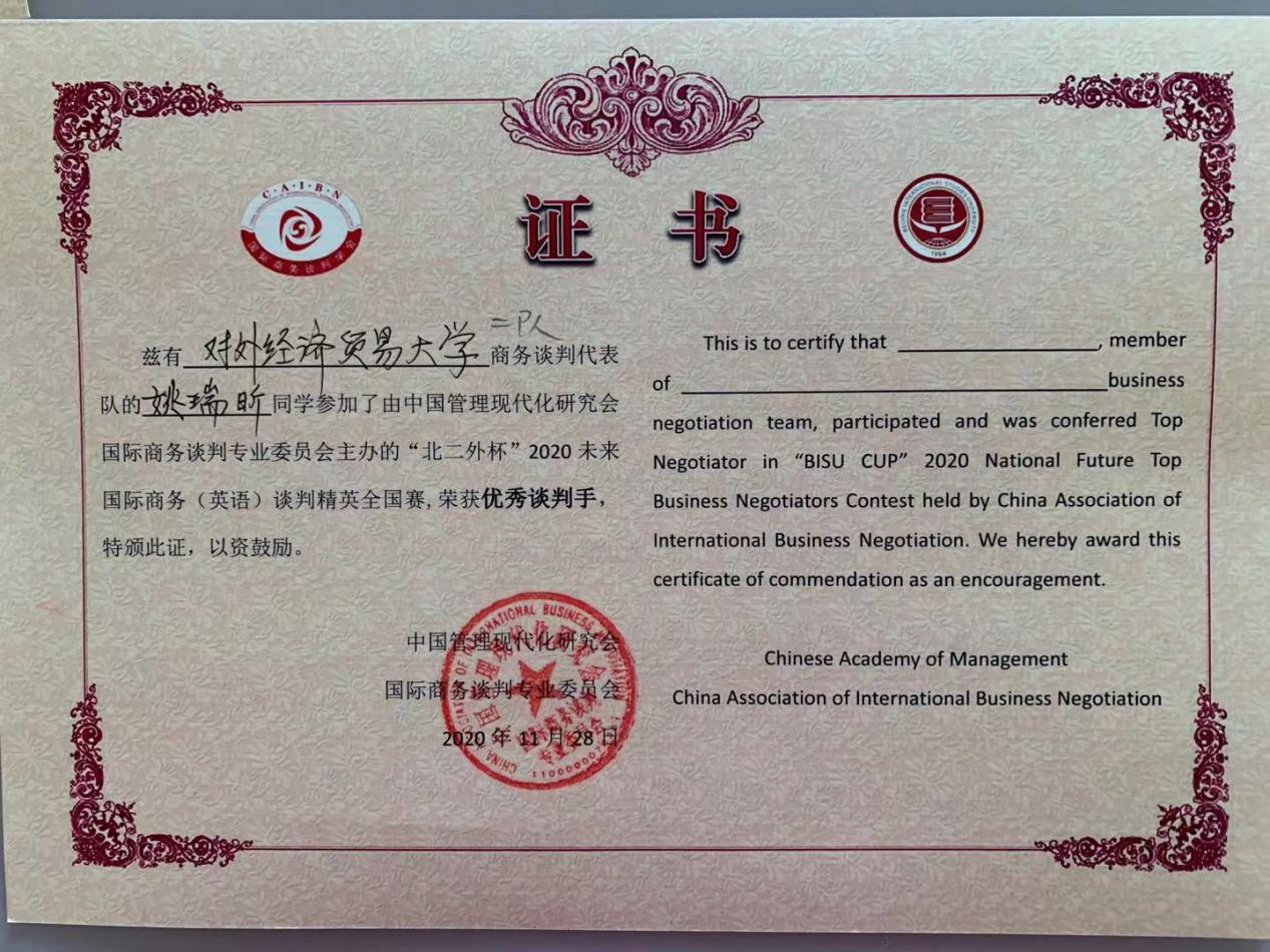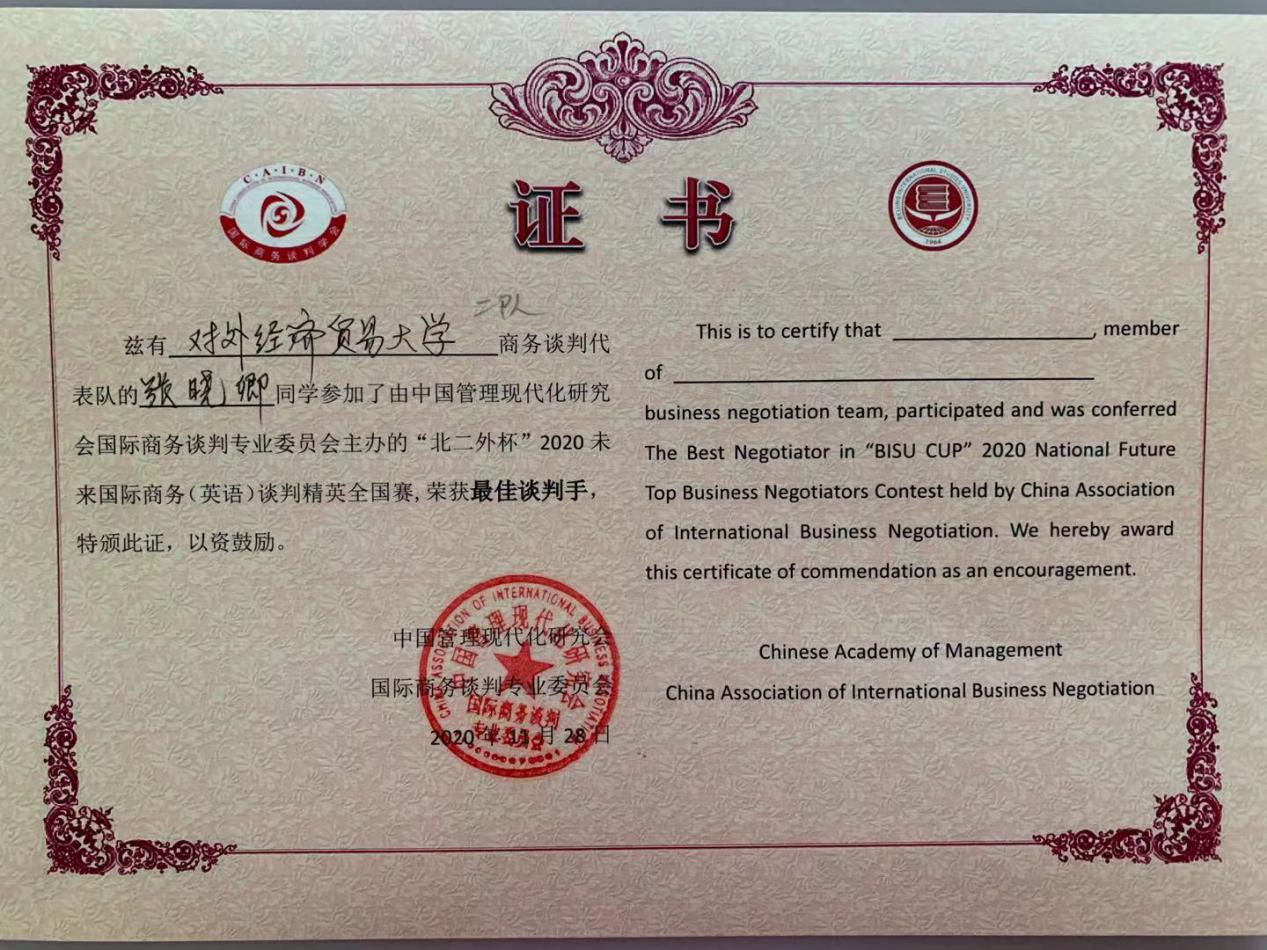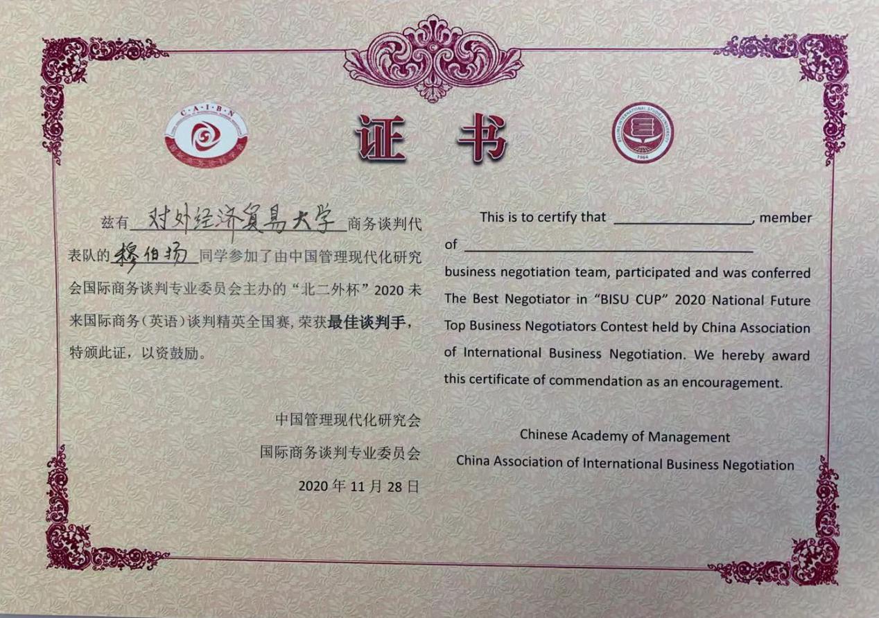 ——对外经济贸易大学获得“北二外杯”2020 未来国际商务(英语)谈判精英全国赛总冠军及全国一等奖