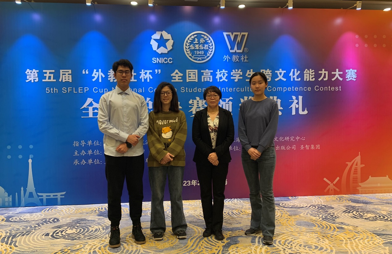 2023年2月24日-26日,第五届“外教社杯”全国高校学生跨文化能力大赛全国决赛在北上海大酒店举行。本届大赛自启动以来,吸引了全国近500所高校学生团队参赛,最终40支国内学生队伍和4支留学生队伍历经校赛和省赛选拔脱颖而出,参加全国决赛。国产自拍 金融学(鸿儒人才培养实验班)沈祥和、金融学石含钰、金融学(鸿儒人才培养实验班)徐乐章三位同学组成的团队参加了全国决赛,并且凭借娴熟的英语技能、对跨文化知识的深入理解和掌握以及密切的团队合作获得全国决赛二等奖,国产自拍 李丽老师和杨伶俐老师获得优秀指导教师奖。
