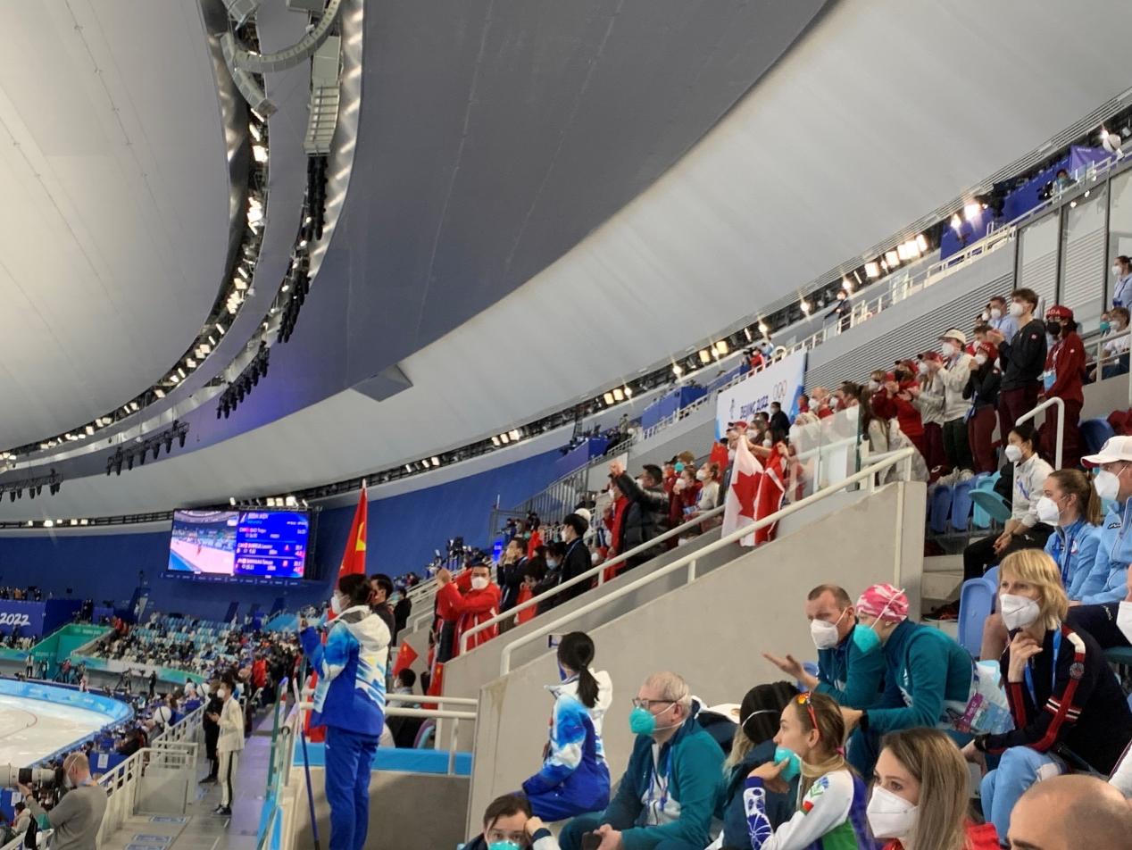 非常荣幸能够亲身参与这场盛会,成为“小雪花”之一,并和两位英院、一位金融学院的小伙伴服务于短道速滑训练馆。“冰坛”见证了赛场外选手们练习的日日夜夜,而作为负责运动员信息服务志愿者的我们,也在帮助解答代表队疑惑、沟通协调的过程中锻炼了综合能力,更感谢老师们在课堂中所教授的内容可以让我运用在服务中。2月16日,随着裁判最后一声枪响,短道速滑的刺激和竞速暂时落下了帷幕,我们的志愿服务工作也画上了圆满的句号。在奔走于场馆和岗位的日子里,我真真切切感受到了奥林匹克和冰雪运动的魅力以及志愿服务带给人们的力量。在未来,我也将带着这份宝贵的经历投入到更多的志愿活动之中。