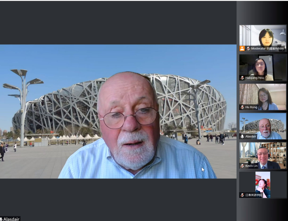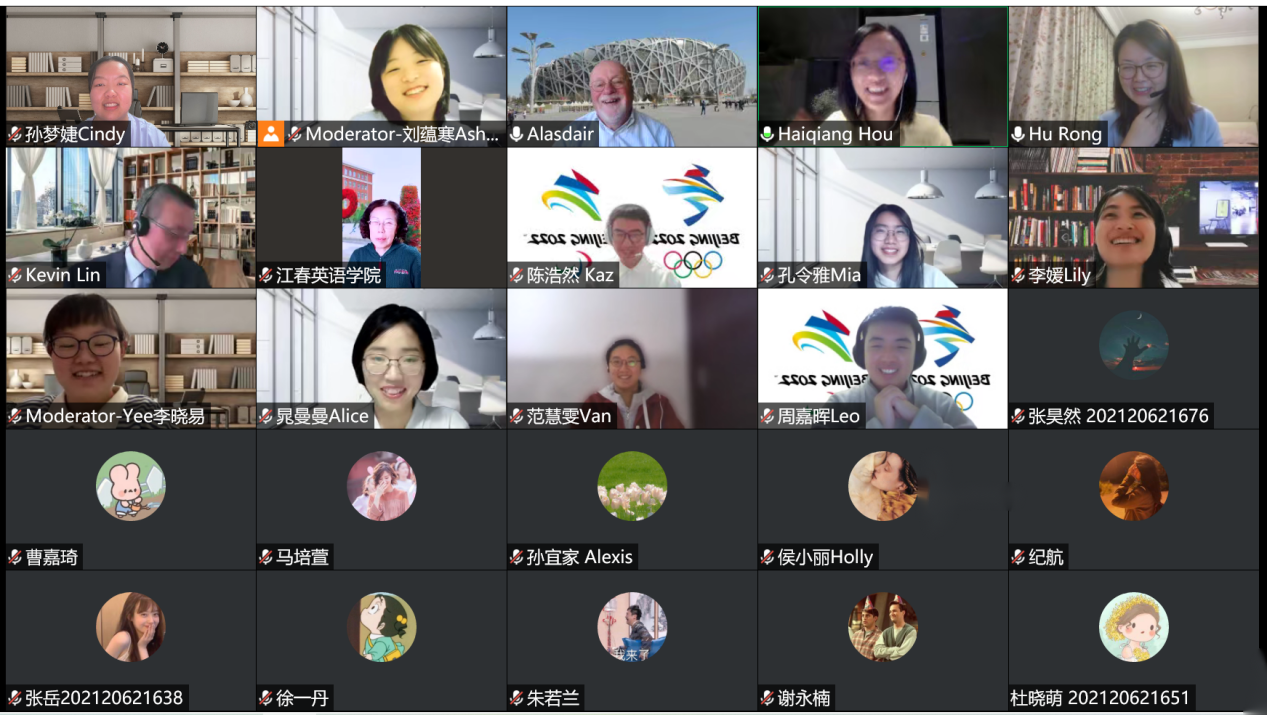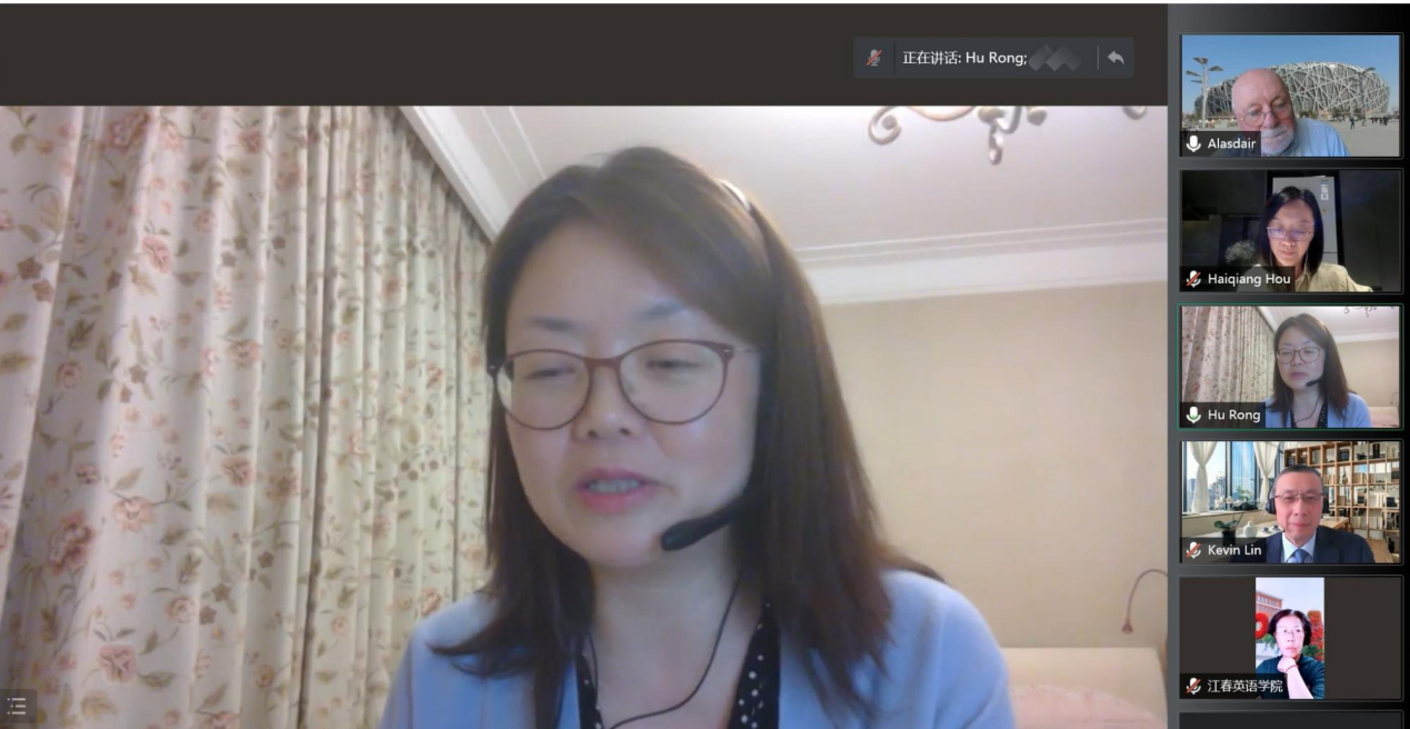 在最后的点评环节,Alasdair Thomson先生指出同学们在同传时的语言表达问题。毕业于贸大英院的林超伦先生指出了同学们在口译当中的常见问题,提醒了线上同传当中的注意事项,鼓励大家勤练多练,不断进步。同样毕业于贸大英院,如今已经是资深译员的侯海强女士为大家在同传当中出现的典型问题提出专业建议,希望大家在语速与反应等方面加强练习,努力提升同传技巧。胡荣老师表示,此次同传模拟在许多方面对于同学们来说都颇具挑战,鼓励大家吸取经验,不断提升自己的口译水平。会议的成功举办,让同学们与译届前辈有了直接交流,积累了线上同传经验,为同学们的同传学习指明了努力方向。