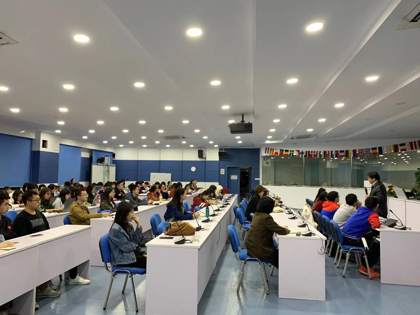 10月21日晚上6:30,国产自拍 向明友院长在诚信1412会议室为同学们上了一堂生动的党课,主题为“不忘初心,牢记使命” --大学生增负增什么 ,从“大学生增负”这一时下热点问题切入,深刻剖析了外语专业乃至大学教育的现状及问题,兼顾趣味性与教育意义,引发了同学们的热烈反响。
