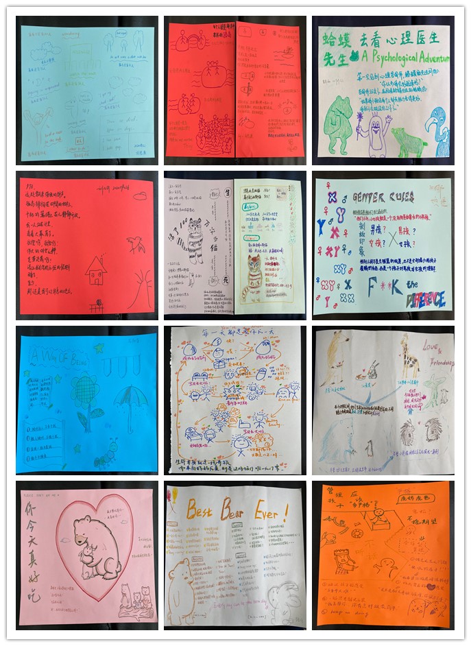 同学们通过绘画等形成多份读书笔记心得、思维导图、手绘画册等读书成果,并对自己的读书心得进行分享,从而宣扬心理健康、自助助人、阳光向上等读书感悟,以此来展现关注自我、管理自我、服务自我的心理健康积极意识,传播青春正能量。