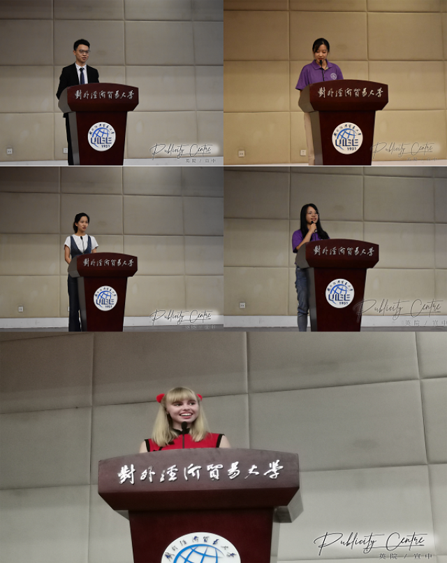 接下来,国产自拍 分团委学生会主席杜金灿、本科新生王诗琳、留学生新生玛丽娅、英语口译研究生会主席王越阳和硕士新生李澜新分别作为本科在校生代表、本科新生代表、留学生新生代表、硕士在校生代表和硕士新生代表进行了发言。当天正是教师节,大家不约而同代表同学们对老师们表达了节日的问候和祝福。老生代表们都先对新生的到来表示祝贺。随后,他们分别结合自己的大学生活对新生提出建议,希望他们可以做好人生规划,充分利用学校资源,审慎选择,敢于尝试,敢于担当。在讲话的最后,他们共同期待新生们可以不负韶华,在贸大遇见最美丽的自己。新生代表们表示他们渴望与来自五湖四海的学子在人文汇聚的贸大启程。尽管带着些许迷茫,但他们深知自己将要担负的使命。他们表示坚守初心,督学力行,才能实现学术梦想;坚守目标,不断思考,才能想更好地自己前进。在讲话的最后,他们表示希望做一名博学者、诚信者、求索者、笃行者,在贸大绘制今生最美丽的风景。