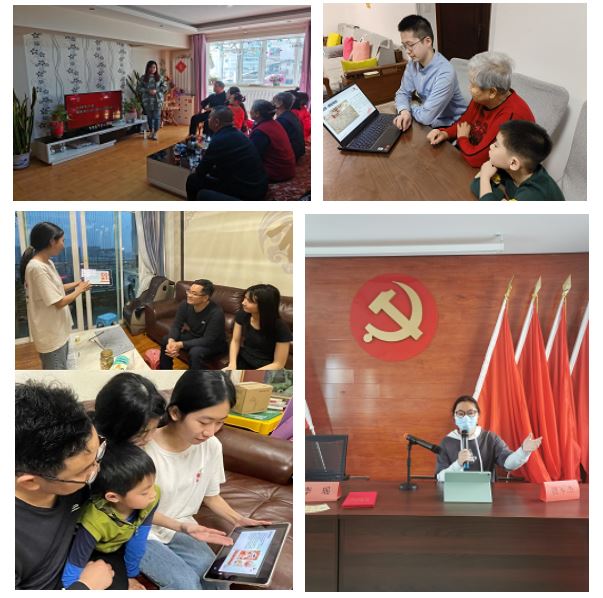 结合各地疫情情况和防控要求,部分同学深入社区和当地中学进行宣讲,部分活动通过线上的形式展开。有的同学也将这一宣讲场合搬进家庭当中,以家庭为单位,为整个大家庭讲述相应的建党精神。社区宣讲活动的对象大多是老人和孩子,这一宣讲活动使得老人们再次回味了属于他们“黄金年代”中所涌现出的风云人物和发生的感人故事,也让小朋友们通过视频等易于接受的形式,了解到了中国共产党的光辉与伟大。听众们还对我们的英文教学非常感兴趣,经常和我们一起朗读相关单词短语,整个活动开展地顺利融洽。