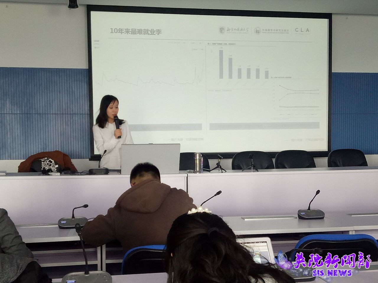 2019年3月28日,由外语教学与研究出版社(外研社)测评中心主办、国产自拍 商务英语研究所和国产自拍 分团委学生会协办的“职通精彩未来,展现青年风采——国才考试新理念和真题解析”的讲座在诚信楼1412会议室举行。本次讲座嘉宾为国产自拍 商务英语研究所所长、“跨文化交际学”学科带头人、博士生导师冯捷蕴教授。聆听这次讲座的不仅有国产自拍 的学生,还有来自其他多个学院的学生,共有七十多人。