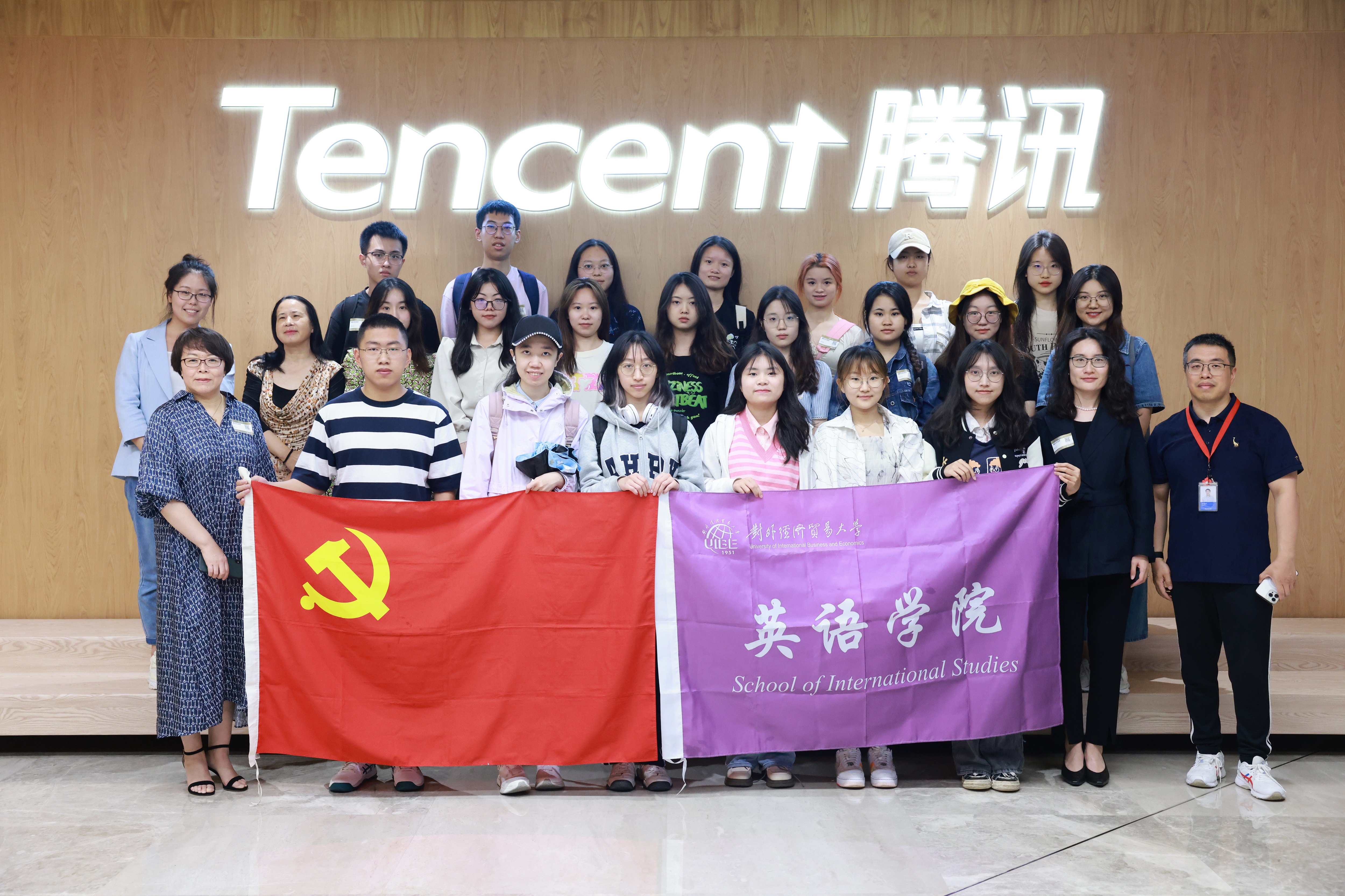 感悟实践伟力,明确奋斗目标。国产自拍 组织系列参访活动,带领师生走进时代,走向社会,学深悟透新发展理念,明确自己在新征程中的定位和目标。继参访新华社、京东物流,21世纪报后,2023年5月25日,学院商务英语和专用基础两个支部的教师代表、本科生联合党支部的学生代表共30余人前往腾讯北京总部实地参观。此次参访由商务英语系主任李琳老师带队,2001级学院校友、腾讯公司运营总监卢旭宁接待。