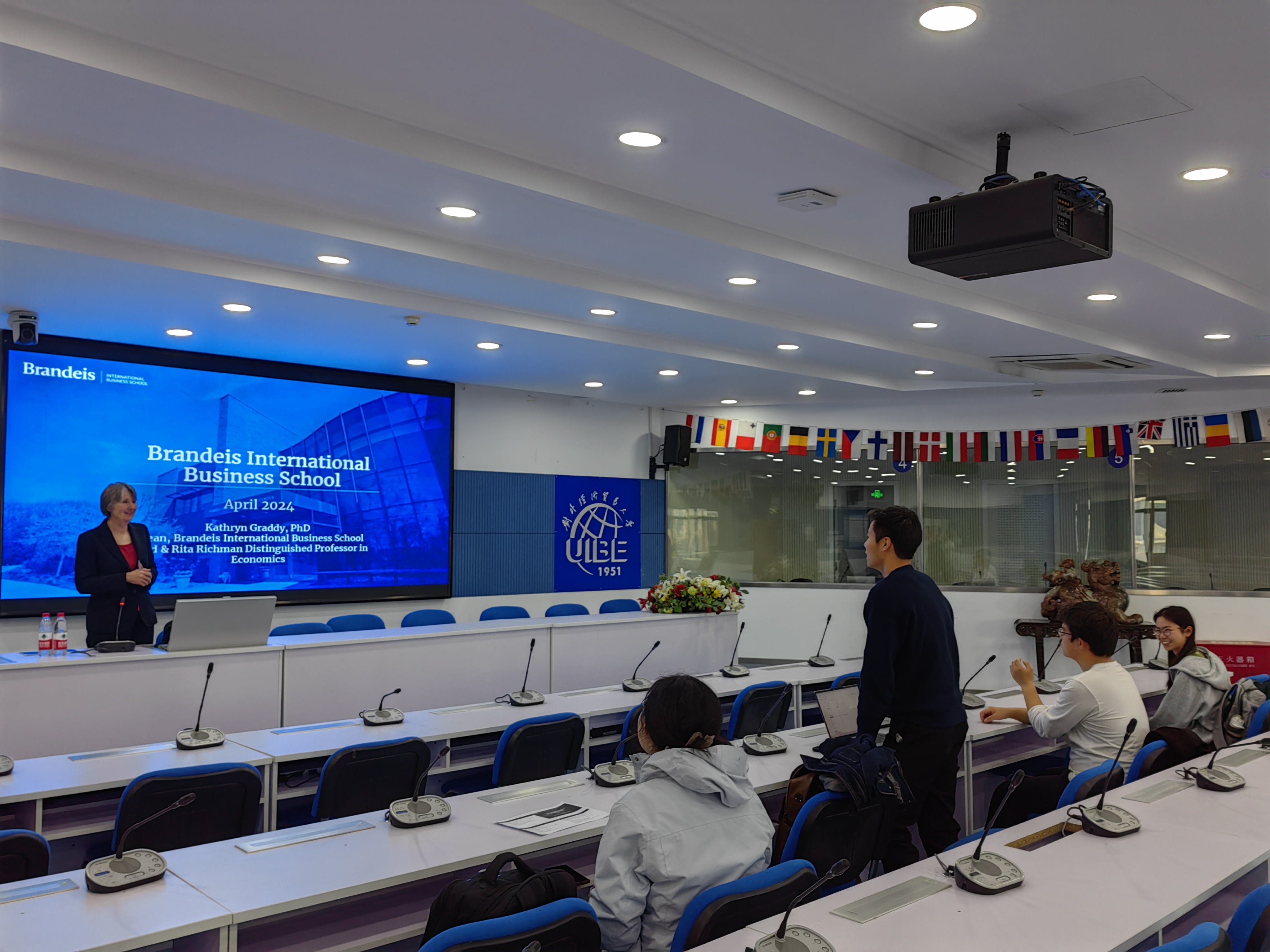 会谈结束后,Kathryn Graddy院长在诚信楼1412会议室做硕士项目宣讲,介绍布兰迪斯大学国际商国产自拍概况 、办学优势、硕士项目情况,招生流程和语言成绩要求等,并回答了学生们的提问。