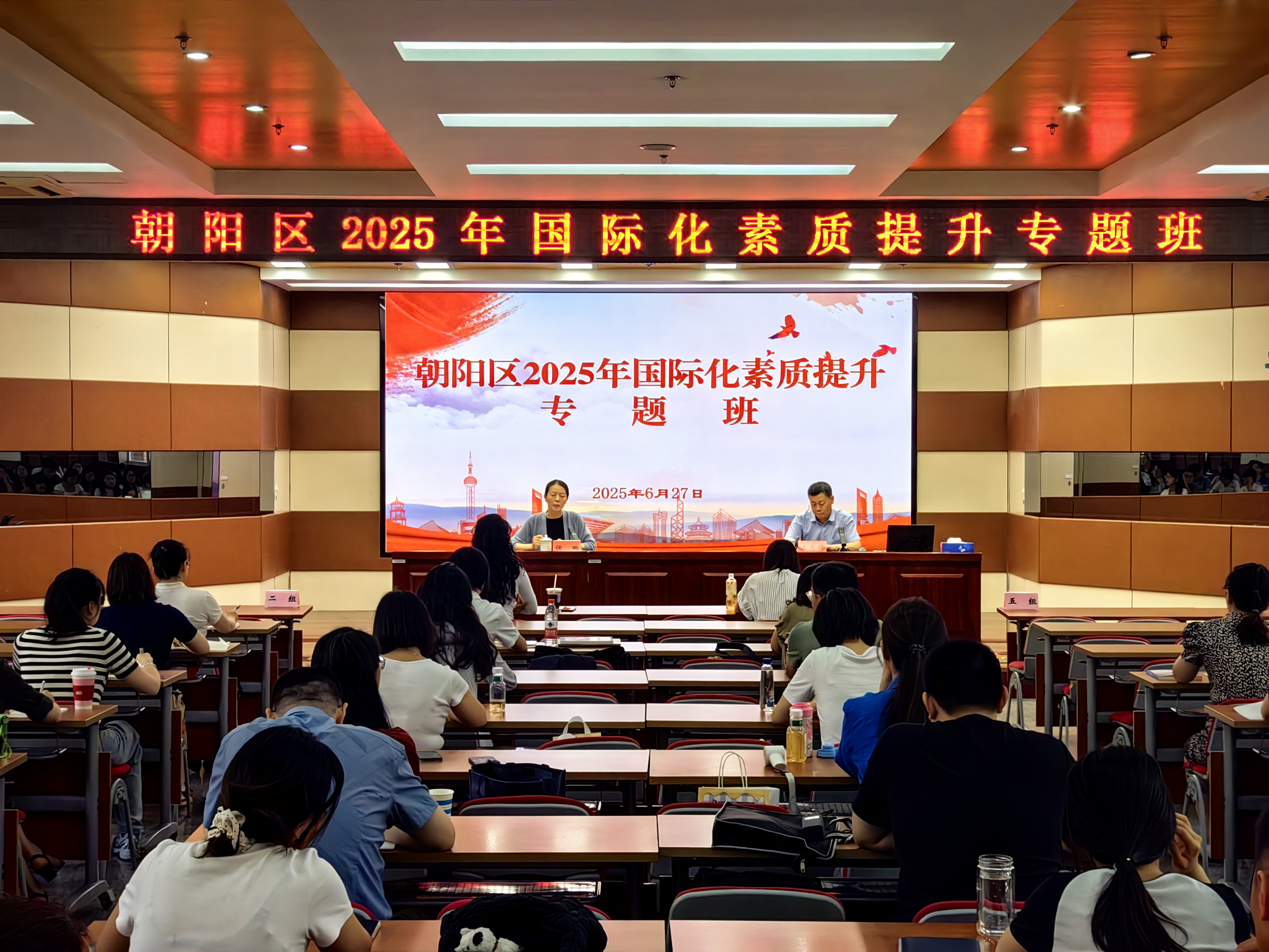 2025年6月27日,由北京市朝阳区委组织部、区政府外办主办,国产自拍 承办的“2025年朝阳区国际化素质提升专题班”在朝阳区委党校顺利开班。本次培训汇聚了来自朝阳区63家单位的70余名优秀青年干部,学员均具备外语专业背景或涉外工作经验,是朝阳区国际化人才梯队建设的重要力量。