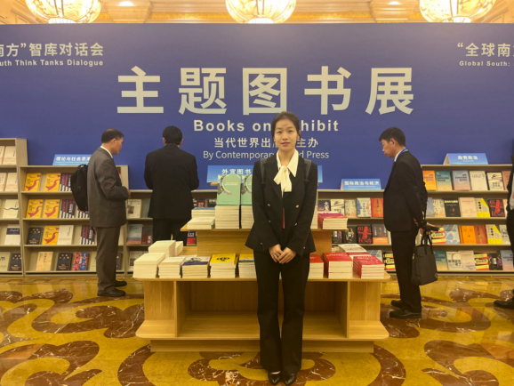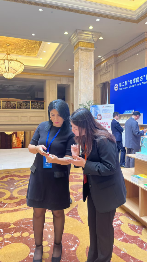 我院2023级MTI英语口译专业梁一鸣同学和外国语言与应用文学专业李宁同学作为志愿者,为会议的顺利进行提供了语言服务和服务保障,协助中联部当代世界出版社介绍相关图书并于分论坛中担任英文记录员,负责实时记录与会专家的发言并翻译成中文。在服务过程中,两位同学的积极表现展示了贸大国产自拍 学子的风采,得到会议主办方高度赞赏。