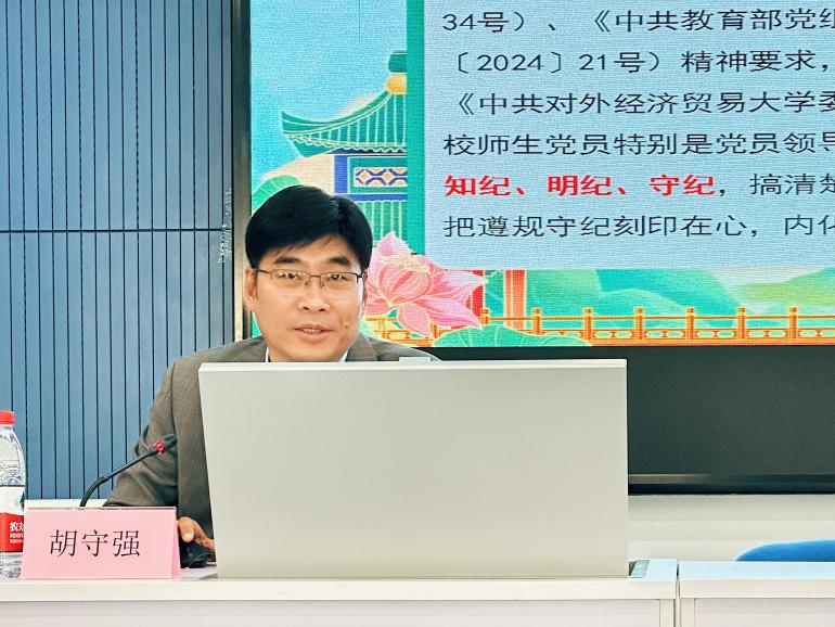 胡守强处长从深刻认识修订《中国共产党纪律处分条例》(以下简称《条例》)的背景、准确把握《条例》修订的主旨要义、严格执行和维护党的纪律三方面依次展开讲解,详细对照分析《条例》修订前后变化,深刻阐释中共党员应严格遵守的政治、组织、廉洁、群众、工作和生活六大纪律,结合违纪案例,警示广大党员严守纪律,不越红线。胡处长强调讲党性、守党规、严党纪,要求党员同志将纪律要求内化于心、外化于行,进一步明确日常言行的衡量标尺,用党规党纪校正思想和行动,通过学习党纪增强纪律意识、提高党性修养。