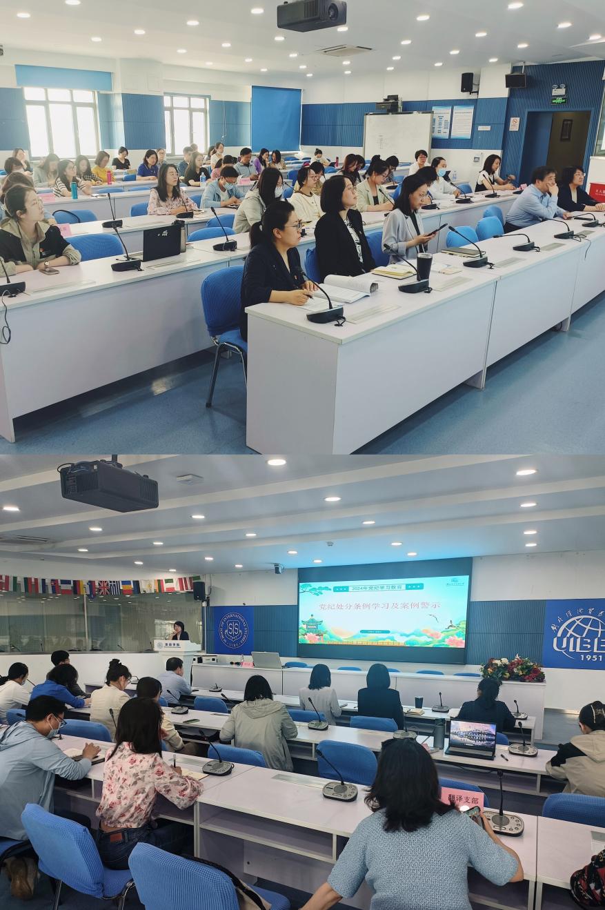 项洁书记代表学院感谢胡处长的细致讲解。她表示学院会深入贯彻中央关于在全党开展党纪学习教育的指示精神,严格落实学校相关工作要求,引导全体党员学纪、知纪、明纪、守纪。学院党委根据学校统一部署,通过布置自学任务、组织集体学习、开展警示教育、加强解读培训等方式,开展学习教育系列活动,营造全员参与、人人学纪的浓厚氛围。此次学习会也邀请了非党员教职工参加,使大家了解中国共产党全面从严治党的决心和举措,欢迎群众对学院党委、班子、党员干部进行监督,提出宝贵意见建议。
