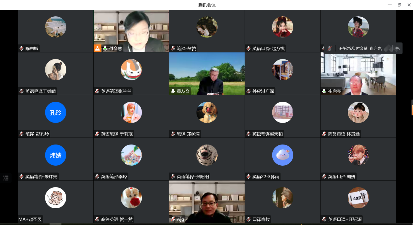 2022年12月9日晚,“‘三进’与中译外人才培养”讲座以腾讯会议的形式线上举行,本次讲座是国产自拍 为推进以国际商务传播为特色的高水平翻译人才培养而举办的“双一流拔尖人才培育·国际商务传播与翻译”系列讲座中的一场。活动由国产自拍 翻译学系主任付文慧老师主持,翻译学系王建国教授、崔启亮副教授以及来自国产自拍 各个专业方向的百余名研究生和本科生参加。