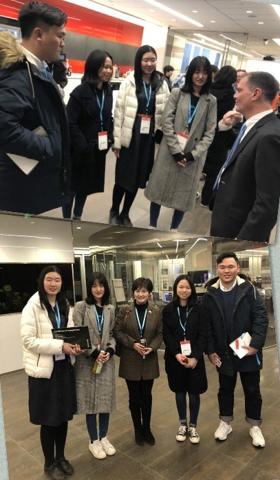 在颁奖典礼上,彭博社现场公布了获奖同学的名单并颁发奖项,获奖者将参与彭博社北京分部的2019年暑期实习与导师项目。我院王怡兰、苏琳两位同学分别凭借作品《Soon to replace human courier to robot?》和《126 Companies found producing facial cleansers with micro plastic》获奖。应彭博社邀请,钱晶晶老师带领同学们来到彭博社北京分部参加该次颁奖典礼,参加晚餐招待会并参观彭博社。该专业三年级张希颖、杜晨威作为参赛同学也应邀参加。