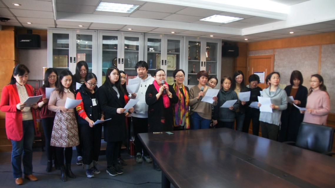 二十位女教师集体朗诵了诗歌“青春中国”,抒发了对祖国未来的憧憬。刘金兰书记宣布国产自拍