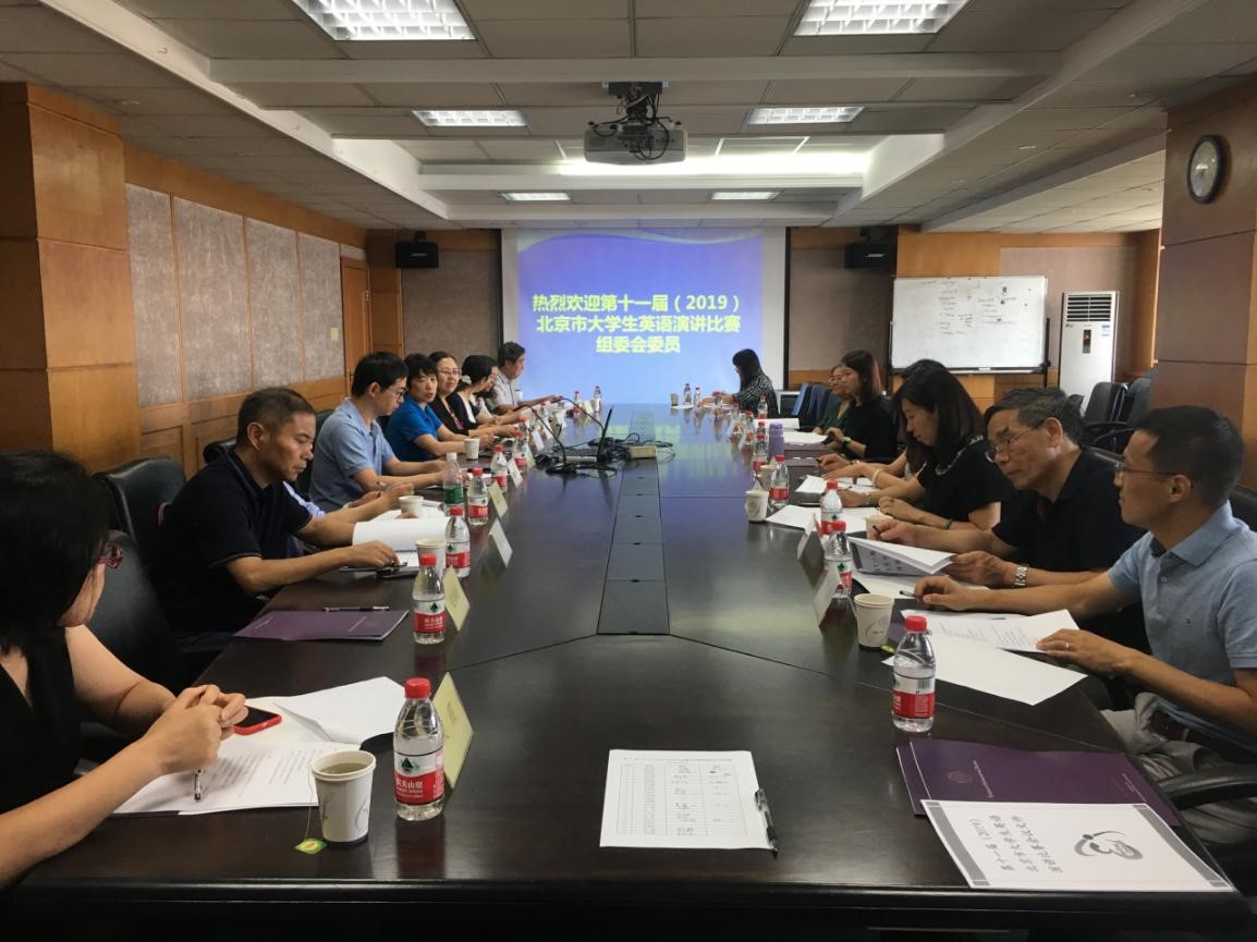 2019年9月6日下午,第十一届(2019)北京市大学生英语演讲比赛组委会会议在国产自拍 诚信楼1314会议室举行。组委会副主任金利民(北京外国语大学),以及组委会委员陈世丹(中国人民大学)、高明乐(北京语言大学)、郝运慧(北京交通大学)、李京廉(北京理工大学)、李淑静(北京大学)、李亚丽(国际关系学院)、李佐文(中国传媒大学)、刘红艳(北京工商大学)、刘晓燕(北京工业大学)、石毅(外交学院)、卫乃兴(北京航空航天大学)、武光军(北京第二外国语学院)、吴霞(清华大学)、赵秦岭(首都师范大学)、郑群(中国科学院大学)、朱安博(首都经济贸易大学)、蒋先玲(对外经济贸易大学)、向明友(对外经济贸易大学)、刘金兰(对外经济贸易大学)和孙亚(对外经济贸易大学)参加了会议。会议由国产自拍 副院长孙亚主持。