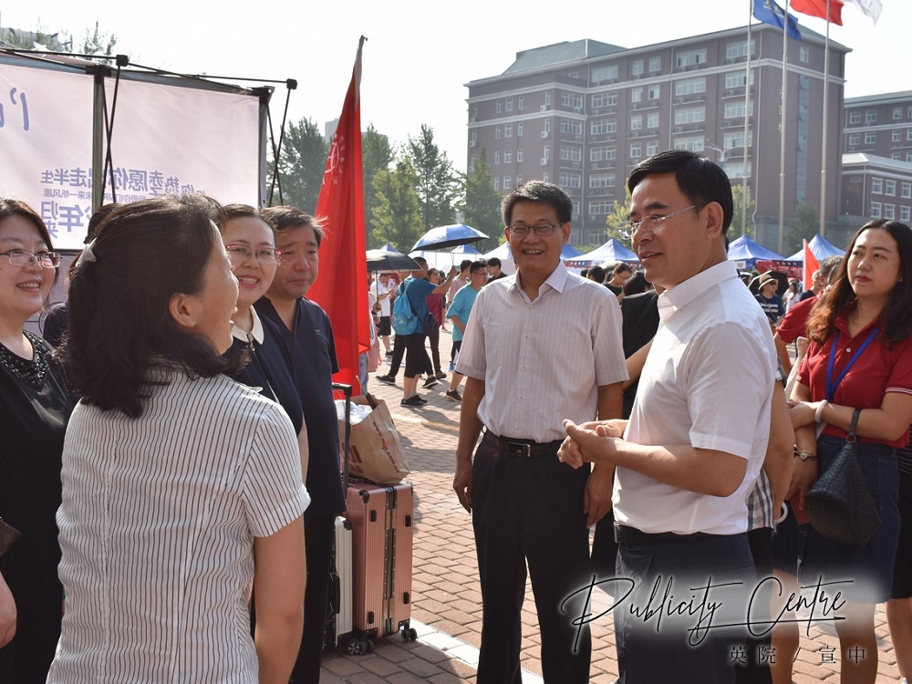 学校和学院领导高度重视本次迎新工作。校党委书记蒋庆哲亲自带队,校党委副书记文君、副校长丁志杰以及相关职能部门领导走访了学院报道展位,了解新生报到情况、慰问迎新工作人员,并与新生及家长亲切交流、解答疑问。