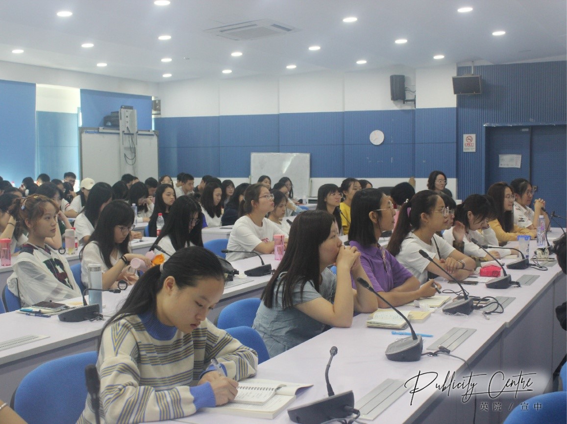 同学们认真聆听刘金兰书记讲座并记下笔记