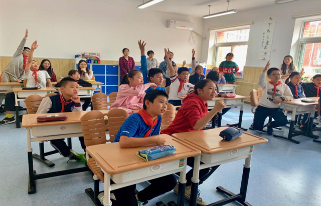 党员和积极分子在六年级4班开展了“红色知识趣味问答”活动。研究生党支部热情鼓励小朋友们了解和党有关的红色知识,积极举手参与知识竞答。