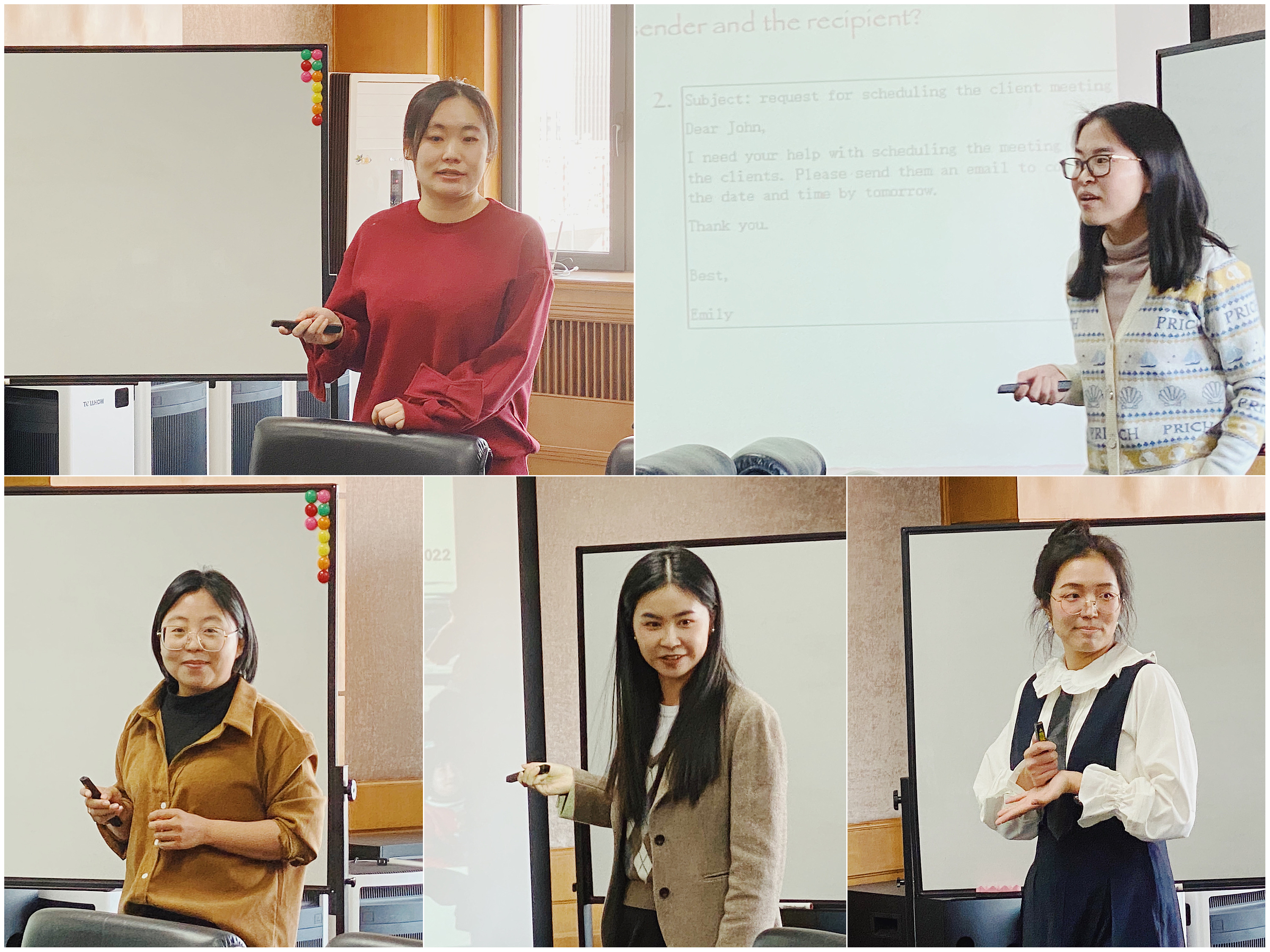 逯璐、袁文、曹培会、牟童、赵红艳五位老师分别做教学演示