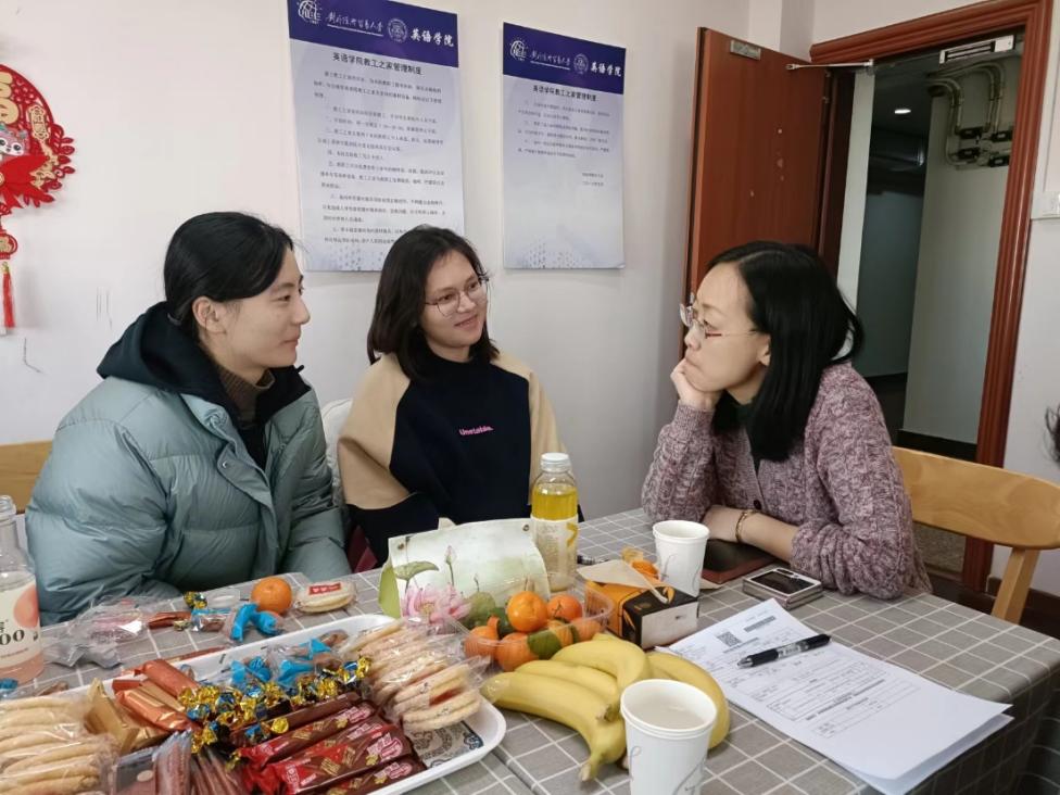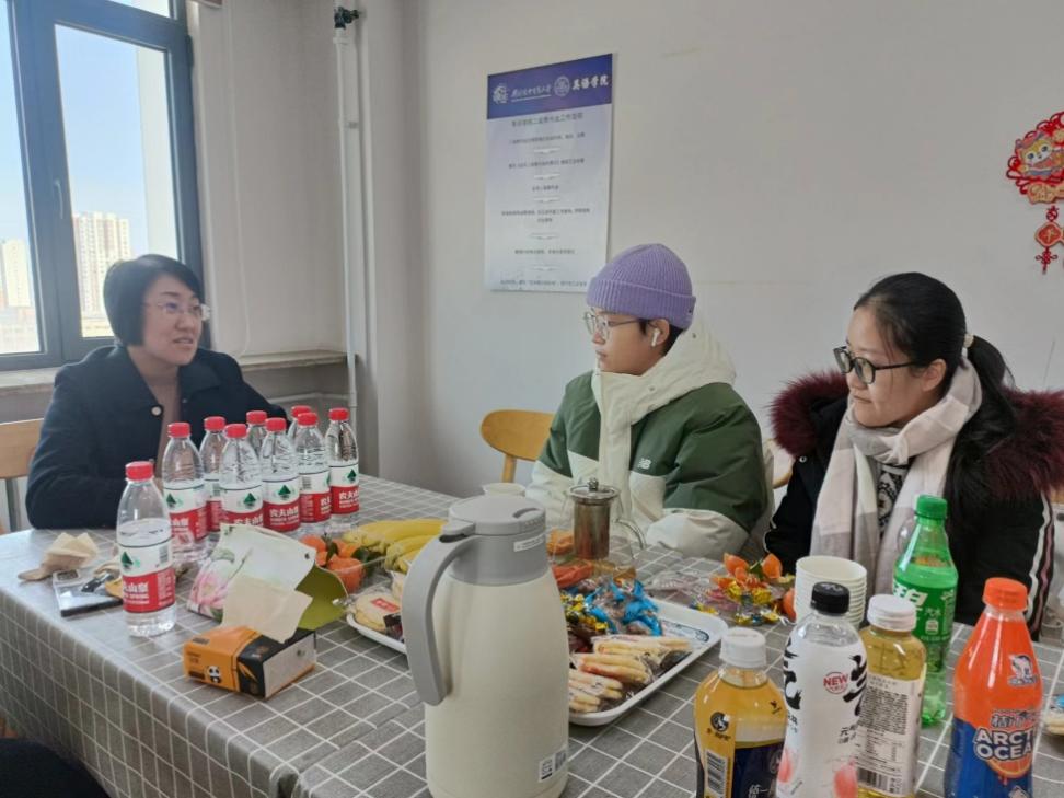 茶话会上,学院领导老师亲切询问了同学们留校的学习和生活情况,师生们边吃着学院贴心准备的各式零食,边愉悦轻松地聊天交流。项洁书记从个人求学与工作经历出发,与同学们分享了简历设计、面试技巧等求职经验,希望同学们要坚守专业,利用假期时间多读书,开拓视野,广泛了解各国文化。刘冰副书记了解了同学们的实习情况与未来职业规划,分享了就业的信息渠道和关键时间节点,并为同学们解答了他们关心的双学位、推免等政策,鼓励同学们多实践,多尝试,在实践中找到自己的兴趣点。