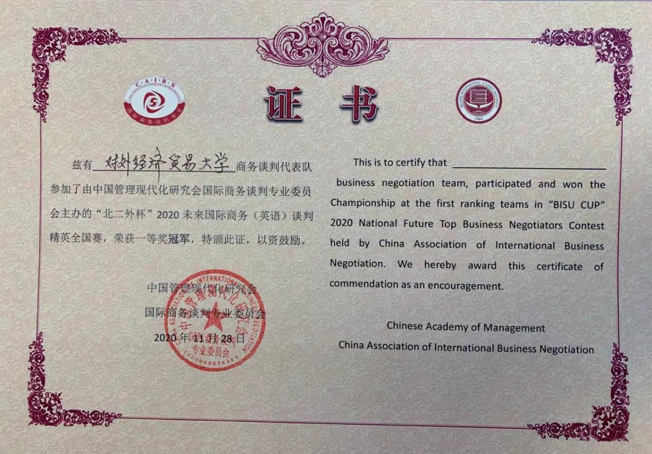 ——对外经济贸易大学获得“北二外杯”2020 未来国际商务(英语)谈判精英全国赛总冠军及全国一等奖
