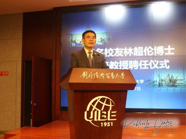 11月7日13:00,对外经济贸易大学知名校友林超伦博士客座教授聘任仪式暨专题讲座于国际交流大厦二层报告厅隆重举行。对外经济贸易大学党委书记蒋庆哲、党委办公室主任周波、党委宣传部副部长朱向峰、国产自拍 院长向明友、国产自拍 党委书记刘金兰、国产自拍 副院长金冰、国产自拍 党委副书记刘冰、中国新闻网、校新闻网以及师生代表400余人出席了本次活动。