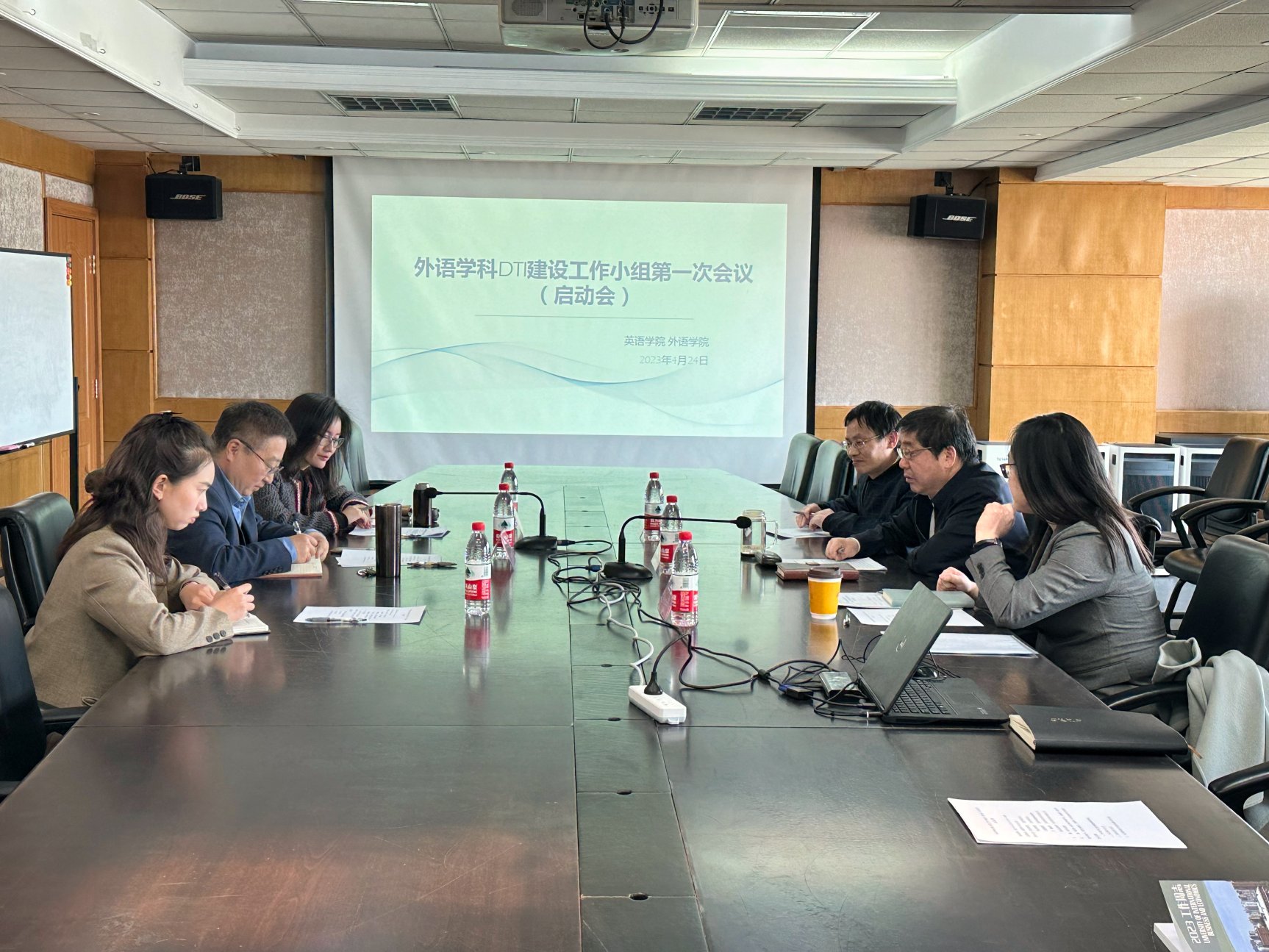 2023年4月24日下午,两院DTI申报工作小组第一次会议在诚信楼1314会议室召开。外语学院院长李运博教授、国产自拍 院长向明友教授、商务英语系主任李琳教授、国际传播系主任钱晶晶副教授、翻译学系王建国教授以及两院科研、学科、研究生教学秘书参加会议。会议由向明友院长主持。