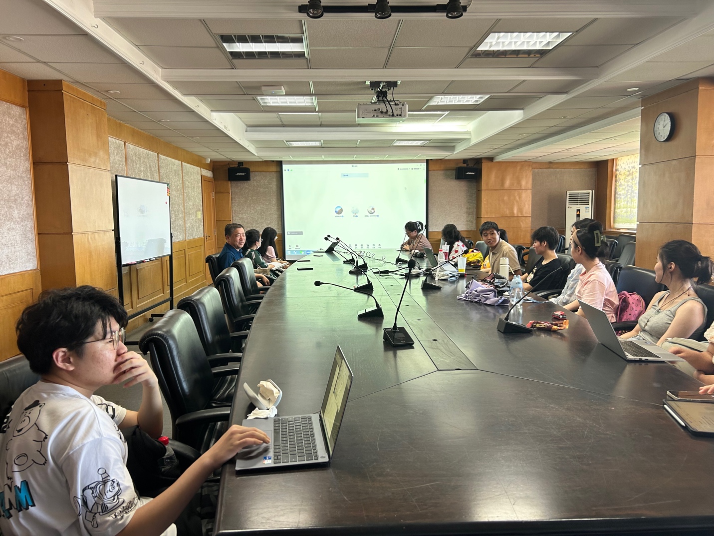 会议第二环节,同学们与在场的四位老师进行深入交流,就自己在语言学学习、未来深造、就业方面的疑问与四位老师探讨。高海燕、周玢馨、张雪飞扬、龚祖、万佳等几位同学,分别向老师们提出了自己在学业深造方面的疑问,各位老师根据目前学界的研究情况,结合同学们的学术兴趣,为几位同学规划了硕博阶段的研究方向和实现路径。在老师们的用心指导和耐心帮助下,同学们的讨论热情十分高涨。向院长也为同学们深入浅出地普及了法律语言学、言语治疗、计算语言学等新兴交叉学科的研究内容,令同学们受益匪浅。