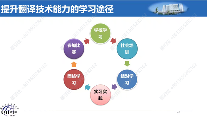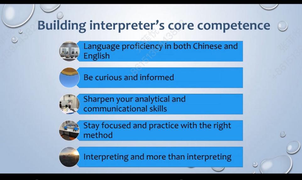 7月25日晚,我院翻译系胡荣副教授带来“职业译员的基本素养和口译学习的路径”主题讲座。胡老师首先介绍了自己在口译实践及教学方面的经验,随后围绕“什么是会议口译?”“一场正式口译的过程是怎样的?”“职业译员必须具备哪些素养或技能?”“‘我’如何才能成为一名合格译员?”四个问题展开。针对前两个问题,胡老师从亲身经历出发,通过展示自己曾参与的大型会议口译现场图片(2022北京冬奥会等),还原真实的口译现场及译员的态度表现。针对后两个问题,胡老师首先说明了口译实践的不同类型,随后从口译定义出发,引申出职业译员应具备的核心素养及技能。胡老师提醒同学们,想要成为一名优秀的口译员,需要“锻炼专业技能”与“构建自身核心竞争力”两手抓。日常应加强训练沟通能力、多任务处理能力、逻辑思考能力、辩证性分析听力能力、话语分析能力、双语能力、速记能力等,打铁还需自身硬。
