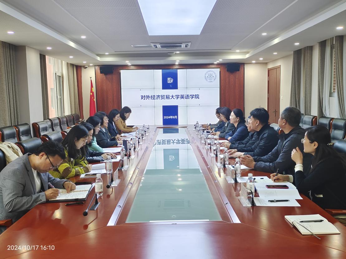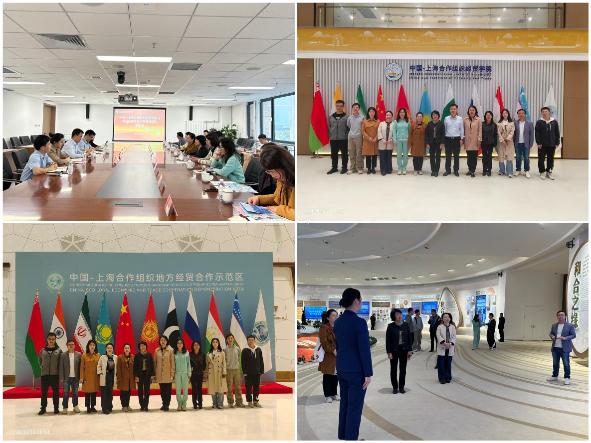 随后,调研团前往上合组织经贸学院参观调研,围绕外语人才需求、课程开发、课题合作等方面的合作与上合组织经贸学院院长郑师交换意见。上合组织经贸学院国际交流合作部部长逄贵乔、综合部业务主办蒲岚西、培训部业务主办金一瑶、国际交流合作部业务主办黄岚华参加座谈。会后,英院一行前往青岛上合之珠国际博览中心参观。