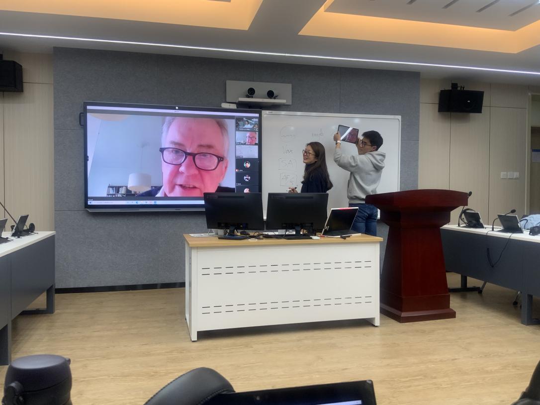 2021年11月16日和12月3日,欧盟口译总司前中国项目负责人Paul Brennan先生为国产自拍 2021级英语口译专业的研究生进行了两期交传笔记大师课的授课,国产自拍 翻译学系副主任、国际会议口译项目负责人胡荣老师参加并主持了大师课。